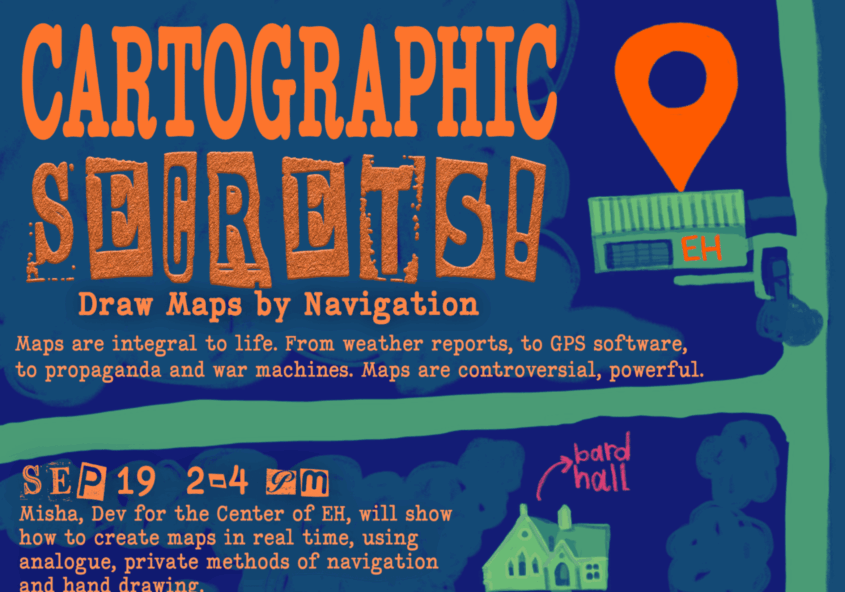 EH Workshops: Cartographic Secrets Cartographic Secrets! Draw Maps by Navigation Sep 19 from 2-4pm Location: EH (New Annandale House) Maps are everywhere and integral to everyday life, especially in the digital era.…
