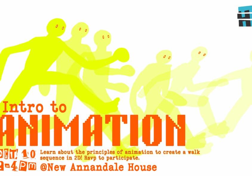 Intro to Animation Friday, October 10 @ New Annandale House 2-4 pm Learn about the principles of animation to create a walk sequence in 2D! RSVP to participate: [email protected]
