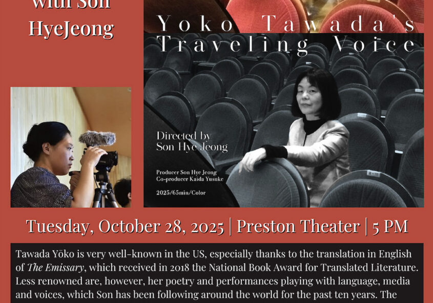 Yoko Tawada’s Traveling Voice: A Screening and Conversation with Son HyeJeong Tuesday, October 28 Preston Theater 5 PM Tawada Yōko is very well-known in the US, especially thanks to the…