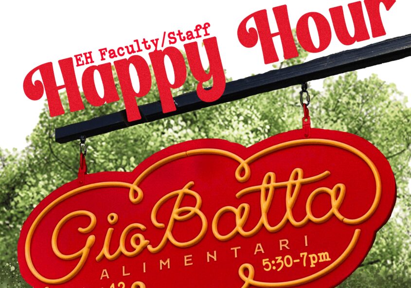 Please join us for Happy Hour on Wednesday, November 12th! Drinks & appetizers provided. All faculty and staff are welcome!