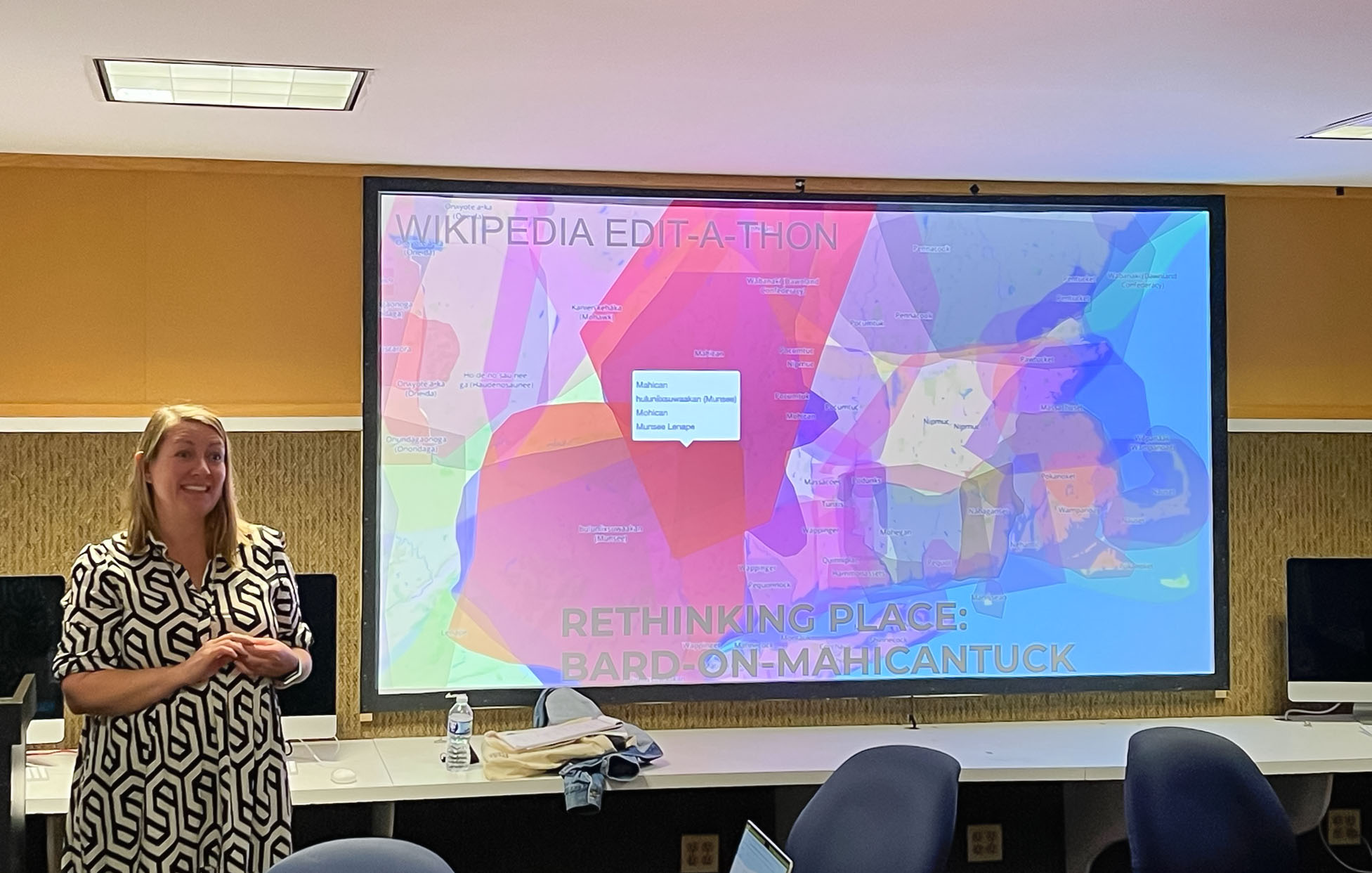 The inaugural fall conference of Rethinking Place: Bard-on-Mahicantuck, a Mellon Foundation Humanities for All Times project, considered the topic of archives from a range of humanistic perspectives, with keynotes showcasing methods in Native American and Indigenous Studies and African and African-American Studies, as well as offering the viewpoints of contemporary artists on these topics. EH again collaborated with CCS to offer Wikipedia workshops for the History course, “Stakes and Claims: A Social and Cultural History of Ownership.” Students then joined others attending the Rethinking Place conference for an edit-a-thon.